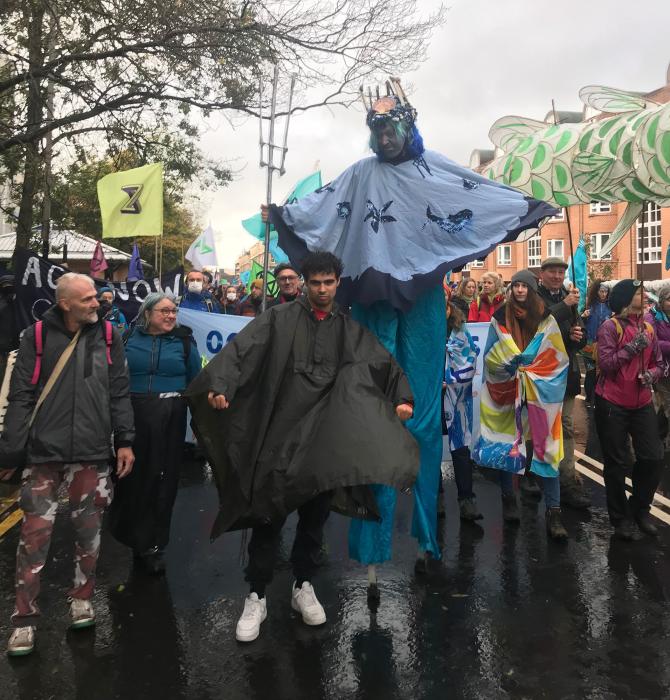 My first day coincided with the Global Day of Action for Climate Justice, which was marked by demonstrations in 100 countries around the world. In Glasgow, I was one of 100,000 people marching through the wind and rain to demand immediate action from our world leaders. Despite the gloomy, wet weather reducing many placards to cardboard mush, spirits remained high and the atmosphere was electrifying. The drums of Extinction Rebellion protesters paired with chants from the crowd could be heard echoing through the streets. We were even blessed with a rainbow as we descended into the city’s oldest park, Glasgow Green.