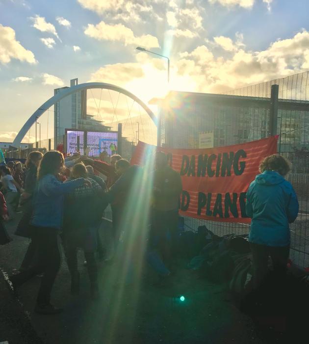Later that day I made my way to the demonstrations being held outside the Blue Zone, where the main conference was taking place. Protesters were teaching traditional Scottish dancing in the street and handing out delicious home-cooked vegan food. The protesters had hung a banner on the gates of the Blue Zone with the words “No dancing on a dead planet.” Despite this sobering message and the swarms of police officers carefully monitoring our every move, we danced merrily in the streets as if no one was watching.
