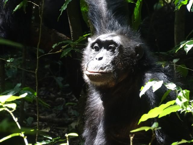 Secondly, researchers can function as a shield. The Budongo chimpanzees seem to recognize that the researchers neither hurt nor help— and that neighboring communities don’t know that. I was moving with the chimps one day when they entered a neighboring community’s territory. They were eyeing the other community’s Cynometra seeds since they had eaten all their own. The Budongo chimps were moving slowly so the researchers could keep up. When the other community came rushing out to defend their territory from the invaders, they took one look at us, turned tail and ran. I know I’m anthropomorphizing, but I could swear I heard the Budongo chimps laughing.