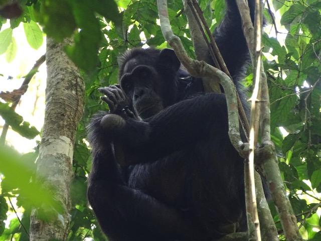 I hadn’t been in Budongo long when I had the pleasure of meeting Nambi, who was born in or before 1962. During her life, she had delivered five offspring: Muga, Andy, Musa, Nora and Night. Muga and Andy died fairly young, and Nora and Night immigrated to a neighboring community. To avoid inbreeding, female chimpanzees leave the community they were born into once they are sexually mature. Nambi and I have a few things in common. We’re both mothers and were born about the same time, though I didn’t have children when I first met her. When spending time with chimp mommas, you can’t help but notice how different their mothering styles are. Some new moms don’t let their offspring out of their reach or rescue them at the first peep. Not Nambi — she let her children try to solve their own problems and only rescued them when they were truly in harm’s way. I decided that I would emulate Nambi’s mothering style when I had children of my own. After leaving Uganda in 1999, I returned to Colorado, had my children and got my PhD from Kyoto University in Japan. I then had the good fortune to return to Budongo in 2015.