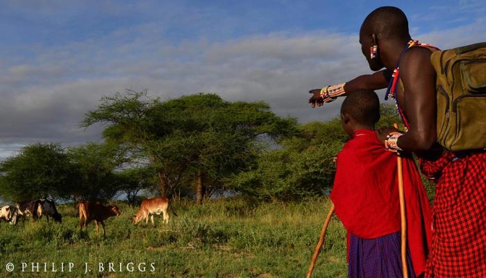 Guardians spend the other three days of the week helping their communities. They “talk to herders they meet, and if they find livestock close to areas where the lions are, they will help the herders safely move the livestock to another grazing area. This is one of our conflict mitigation strategies. Another strategy is to help community members find lost livestock and young herders, which if lost in the bush are susceptible to predators. Finally, if livestock is attacked or killed, the Guardians will assist the livestock owner to bring any meat home, while also calming the other warriors to avoid retaliatory killings. Often, our Guardians are the first responders to the scene and help to dissipate tense situations; they also call in the Kenya Wildlife Service rangers or local game scouts if the situation escalates.”