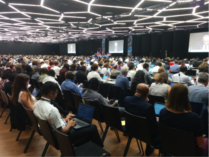 As mentioned, CoP18 has a very structured and formal way of conducting business. Nobody asks questions to the entities that present their reasoning for supporting or opposing a proposal. The Chair has enormous power — he determines which entity to call to explain their position, how long each individual can talk (usually three to five minutes) and how long the discussion continues until a vote is taken. The first few rows of the room are occupied by the Parties, behind them sit the IGOs, next come the NGOs and, finally, in the last couple of rows, other attendees who could not sit with their delegation because of limited seating. The sequence of presentation is the same as the order of seating. The first speakers for a proposal are the Parties that submitted the proposal. Next up are the opponents of the proposal. The Chair usually then asks IGOs, and sometimes NGOs, on both sides to present their positions. Oftentimes, the key proponents and opponents are known in advance. The procedure is not democratic by any means; the Chair seemed to favor specific countries, such as the US, or entities, such as the EU, that carry a lot of weight, but he also tried to have an equal number of proponents and opponents talk. Some proposals, such as those dealing with the live trade in African elephants, received more time than other proposals, such as those dealing in the live trade of otters. The speeches are called “interventions” and I was prepared to give an intervention in support of Proposal 5.