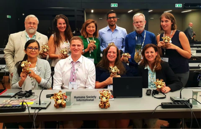 As conservation scientists, we must collect the most accurate data possible in order to save species. I am proud to have been a member of a wonderful team of dedicated activists who are completely capable of meshing science with emotion. I find it rewarding to work with wildlife warriors who strive to guard Mother Nature. Thanks to everyone — Teresa, Tanya, Adam, Iris, Becky, Mark, Sumanth, Mai, Audrie, Manon, Nichol, Bri, Greta, Elodie, Daniela, Matt, Paul, Kathi, Sandra, Lois, Elly and others — not only for their superhuman and indefatigable efforts to stand up for giraffes, but also for their combined camaraderie in creating a better environment for the survival of otters, mako sharks, elephants, tortoises and turtles, glass frogs, teatfish and other creatures that share this planet with us. The only real setback was the defeat of the proposal to list glass frogs. Parties voted 64% in favor of listing them on Appendix II, but that fell shy of the 67% required. Let’s hope that some of the species do not disappear before CoP19 in Costa Rica, home to multiple subspecies of glass frogs.