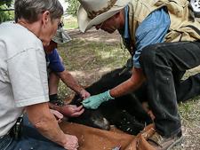 Ramsay wakes up every morning at 4:30 a.m., travels to the holding area and spends the next four hours cleaning out the bears’ pens before heading off to a full day at her regular veterinary practice. She has performed long surgeries on injured animals such as the star bear, been scratched and threatened by the frightened tenants of her holding pens, nursed malnourished animals back to fattened health, treated burns and bites and wounds, fallen out of a tree and burst her spine trying to reach for a bobcat, and is on call 24/7 to help with wild animals all over New Mexico. She is not paid for any of this work.