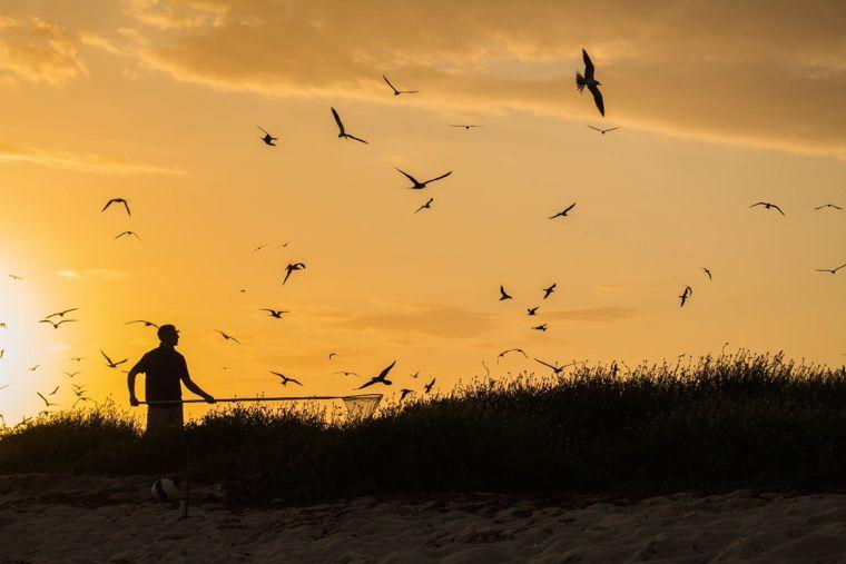 Every January, roughly 80,000 terns come flying in, turning a small, tranquil island into a swirling, cacophonous vortex of feathers. Put together, the birds make a sound similar to a hundred squeaky toys being squeezed from sunrise to sunset. It’s an amazing sight to behold and a fantastic place to work.