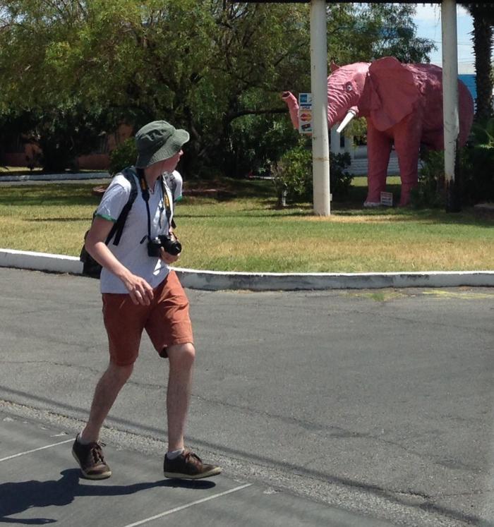 Civilization has buried awe. We are far removed from the cave paintings of wild animals embodying power or divinity among the family of sentient beings. Today we use animals in advertising, design motif, taxidermy trophies and emoji icons, instead of treating them like our equal cohabitants of the animate earth. Yet many of the photos in the book are playful, recognizing that in taming the animal world to accommodate our fear of it, we often make creatures funny. Yogi Bear stands next to Paul Bunyon; a bison rides a motorbike on a wall mural; open jaguar jaws form the entrance to a bar. A giant lobster dwarfs a deli; a tuna is dressed up like a tourist; people ride grinning plastic bees on a merry-go-round.