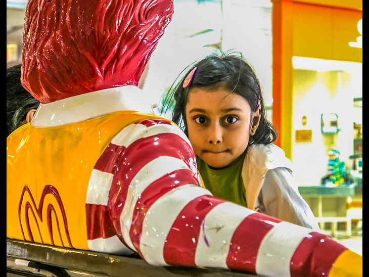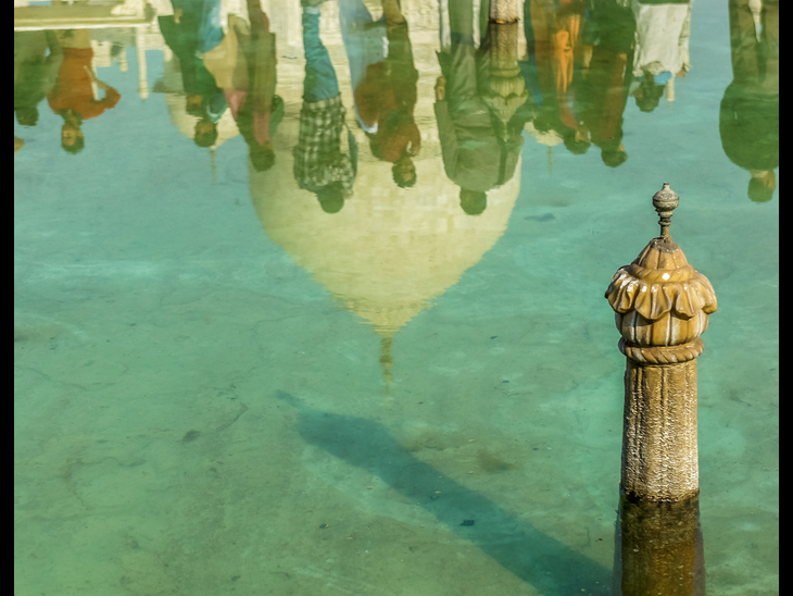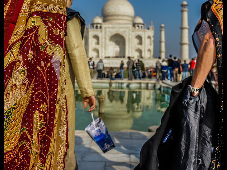 The photos that accompany this essay document the expansion and proliferation of an India sitting snugly in the lap of Ronald McDonald; an India where school children are seen wearing crisp school uniforms attending monuments of national and cultural importance; an India where a traditional salwar kameez hangs on a rack beside a Puma track suit in an outdoor market; an India where poverty envelops millions in a polluted embrace; and an India whose diversity shimmers in the reflecting pool beneath the Taj Mahal – a reflection that, in constant flux, marks the face of the future.