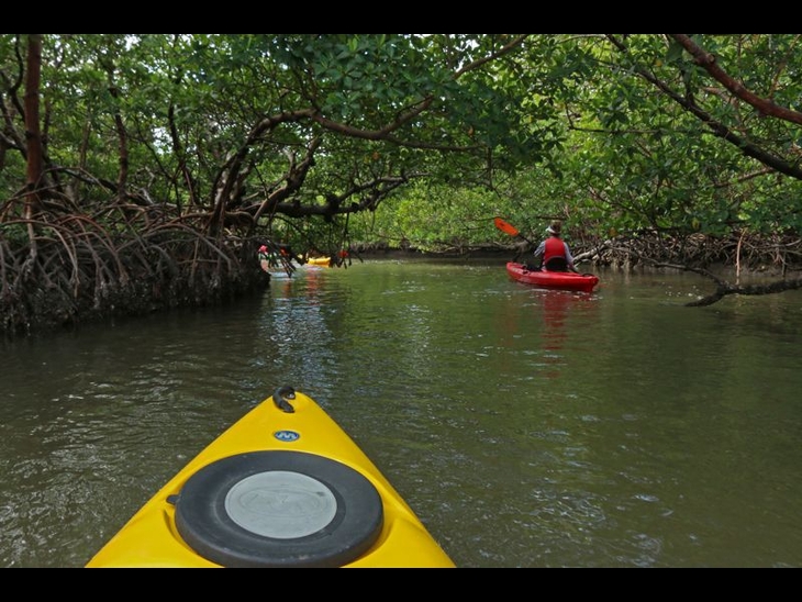 Mangrove estuaries are fast disappearing in the United States. Kayaking through Rookery Bay – which preserves one example of this important habitat – it’s easy to see how rich in biodiversity these ecosystems truly are. As part of a tour group, I spotted American oystercatchers, white ibises, a roseate spoonbill and dolphins. While shadowing a high school field trip the next day, we waded in the shallows seeking mollusk and fish species.