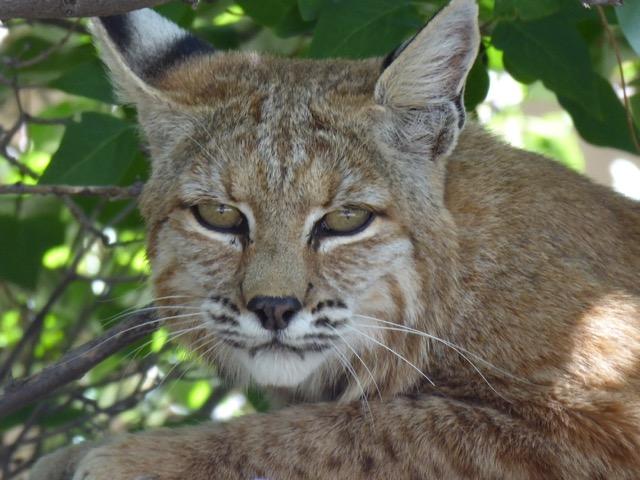 As I open my garden gate on an uncharacteristically sultry Southwest summer afternoon, I hear a growl, a thump and then scrabbling in the Russian olive tree above me. I round the corner and come face to face with a very annoyed looking bobcat mom. She growls once more, looking up at the branches to where her two kittens are peering down curiously.