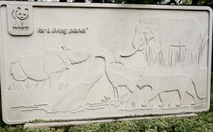 It was a hot, busy December afternoon in New Delhi as I entered the shaded, terracotta gates of Lodhi Estate. This is where the Indian headquarters of the World Wide Fund for Nature (WWF) is located, made immediately recognizable by a stone sculpture carved with the unmistakable silhouettes of the Bengal tiger, one-horned rhino, and freshwater Ganges River dolphin. These would be considered by WWF to be priority species due to their endangered status and importance to the heath of their respective ecosystems. In the lobby stood a worn statue and painting of the Hindu god Krishna before a lotus flower and an inscription that read: