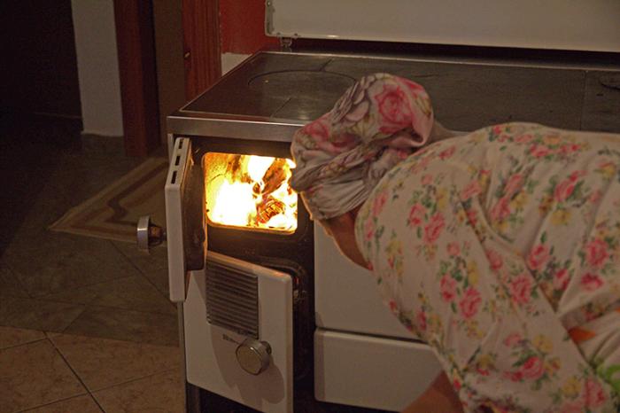 Dalila enciende fuego en la hornilla de su cocina: el fuego hace que el horno esté lo suficientemente caliente como para cocer el pan y la pita a la perfección.