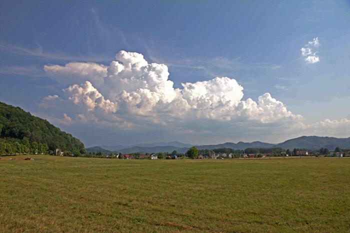 Las nubes ruedan sobre un campo recién segado en el noroeste de Bosnia.