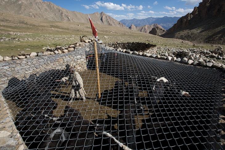 “When they hunt in open pasture,” Nawaz explains, “they may get one animal.” But when they enter the traditionally uncovered pens, “once they get in, they become panicked and kill almost all the animals.” This can be catastrophic. Nawaz recalls one family in the Khunjerab area that lost 80 percent of their animals in 2010, and it took them several years to recover economically. Villagers depend on livestock for their dairy products, and sell the animals for cash to butchers in the regional hubs of Chitral and Gilgit.