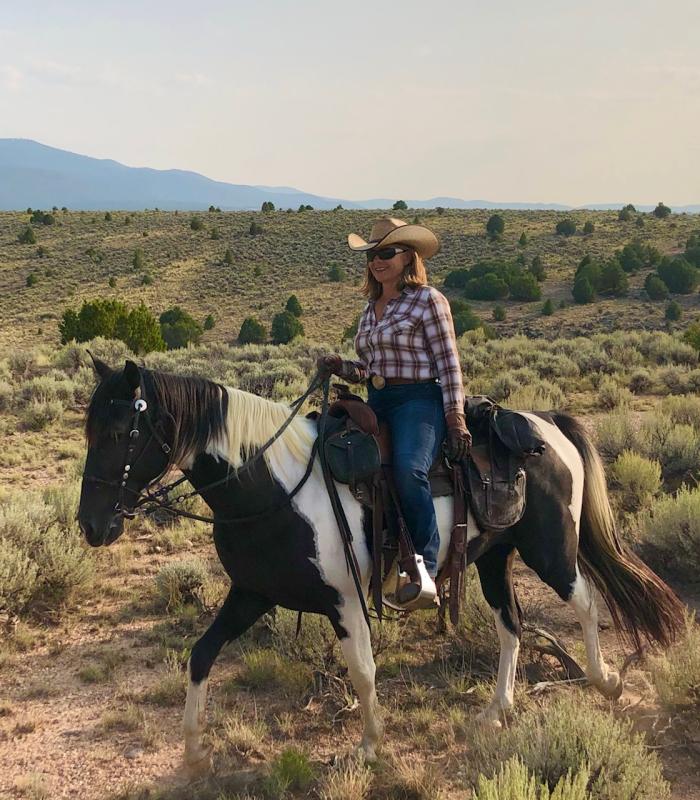 I was encouraged by Tara Waters Lumpkin, the founder of Voices for Biodiversity and a close friend of 25 years. Tara, a Taos resident for decades, suggested I rent a nearby house that summer. She was determined to reconnect with her childhood passion for horses and wanted a riding buddy. As soon as I settled in, she gently pestered me until I’d set up my first lesson with Kimberly a week later.