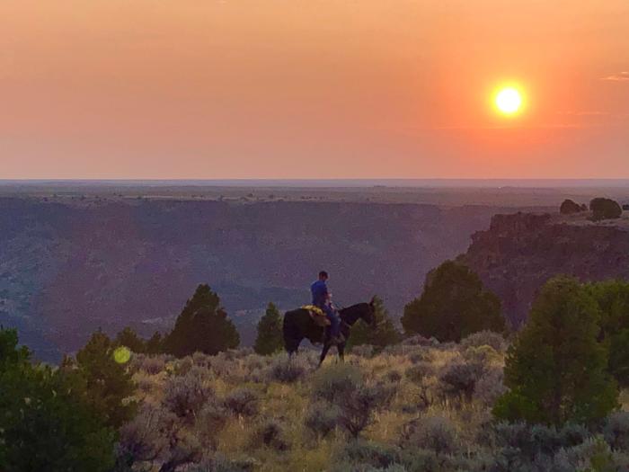 I listen to Kimberly’s reminders and relax into the saddle, enjoying Tilly’s smooth gait. The early summer morning is clear, the vast views of the Gorge from horseback are breathtaking and everyone feels good to be out on a ride.