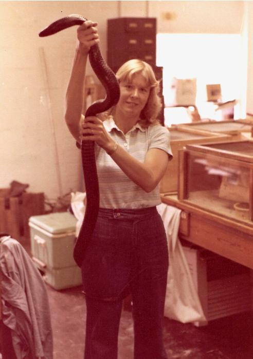 Joan: To say that my indigo snake distribution study was a labor of love is an understatement. I had always thought that snakes were fascinating, and the indigo snake is in a top snaky echelon, so to speak. It is nonvenomous, docile, reclusive and spectacular in both color and size, reaching a maximum length of 8.5 feet. Zoogeography and ethnozoology were interests of mine, so roaming southern Georgia in pursuit of this enigmatic species was a perfect fit. My interactions with local colorful characters provided insights into the species’ distribution and fodder for my memoir. This initial wildlife study allowed me to work with animals, have adventures outdoors and satisfy my innate curiosity. I knew that I was on the right path toward a wildlife research career.