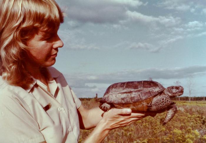 Joan: Perhaps the most noteworthy result of my early research was the realization by my agency that the gopher tortoise cannot sustain harvesting like deer, quail and turkey. This fossorial, or burrowing, species is slow-growing and has low reproductive potential. Both my population dynamics research projects, looking at changes in populations over time and field surveys of those who hunted tortoises, led the Game and Freshwater Fish Commission to prohibit harvesting statewide in 1988. Florida is this species’ stronghold, and protecting the tortoise from widespread predation was certainly beneficial to its conservation.