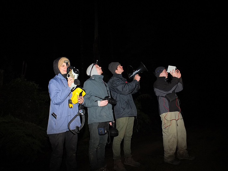 At WOTCH’s public event last November, we took turns sweeping powerful flashlights through the trees, scanning the canopy for eye-shines and flickers of movement. A volunteer with a thermal imaging camera in hand urged me to take a look. The tangled red web on the screen looked like a line drawing of the bush beyond, although, when I looked over the camera into the darkness, everything was indistinct. On the screen, the volunteer indicated a brighter spot of red on a branch: a sleeping bird. Right beside us all of this time, undisturbed by our footfalls, utterly invisible without the aid of this technology.